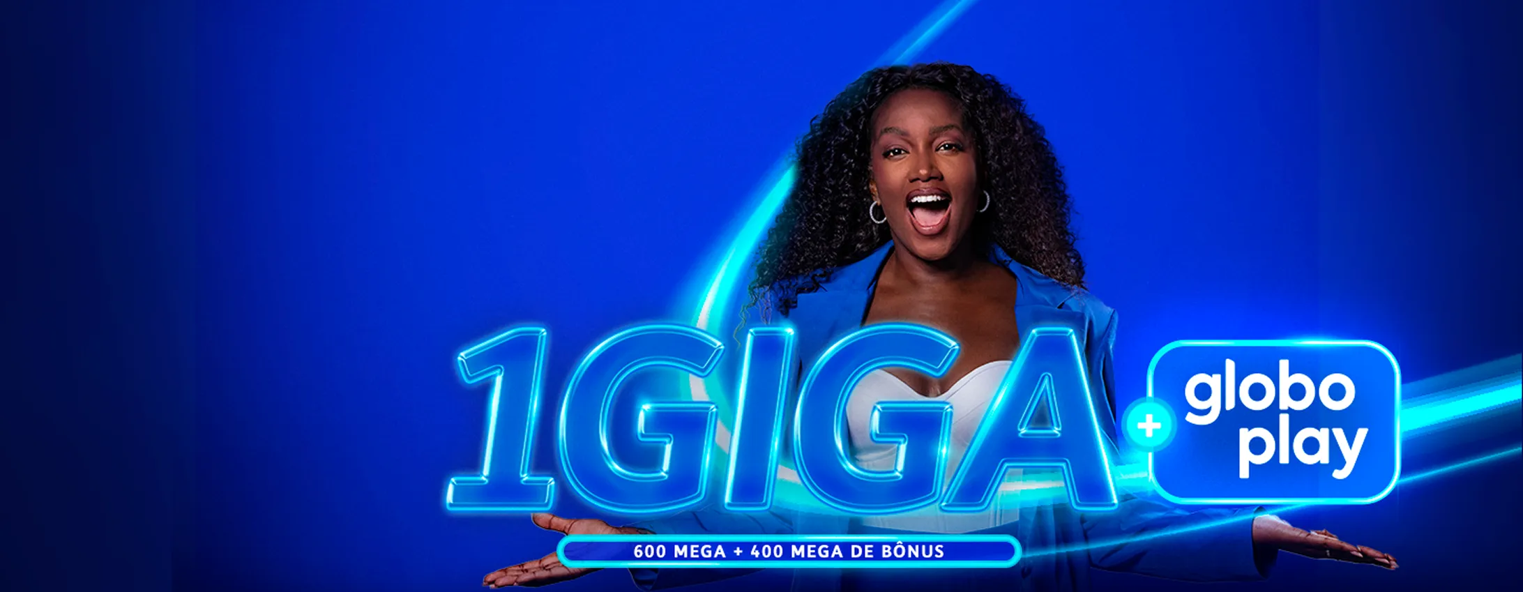 1 Giga: 600 Mega + 400 Mega Bônus com Globoplay por R$129,99/mês